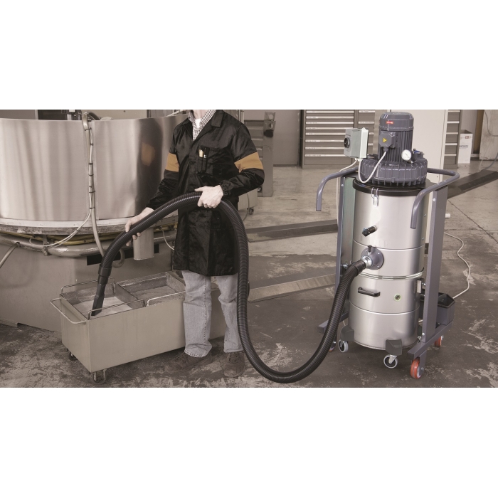 Průmyslový vysavač MTP, určen pro vysávání suchých i mokrých nečistot. Robustní hlava motoru vyrobená výhradně z oceli. Vysokokapacitní plastová nádrž o objemu 115 l s výpustním ventilem, je odolná proti nárazům i působení agresivních chemikálií v nejnáročnějších podmínkách. Inteligentní design ocelového rámu a sklápění mechanismus umožňuje uživateli vyklopit a vyprázdnit nádrž s maximální lehkostí a pohodlím. Sacím pohonem tohoto vysavače jsou tři motory, které je možno používat v libovolném pořadí, ale i počtu. Robustní a odolná konstrukce průmyslového vysavače pro dobrou manévrovatelnost, stabilitu i pohyb. Velkoplošný filtr z polyesterového materiálu třídy filtrace L. Délka el. kabelu 10 m. Doprava zdarma.